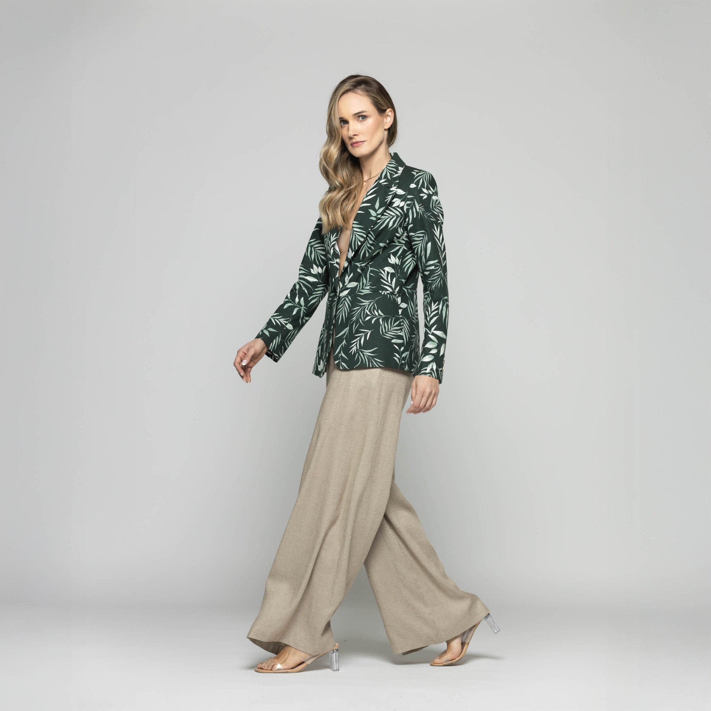 Blazer Mujer Magnolia Clásico Estampado Hojas Verde Ludovica