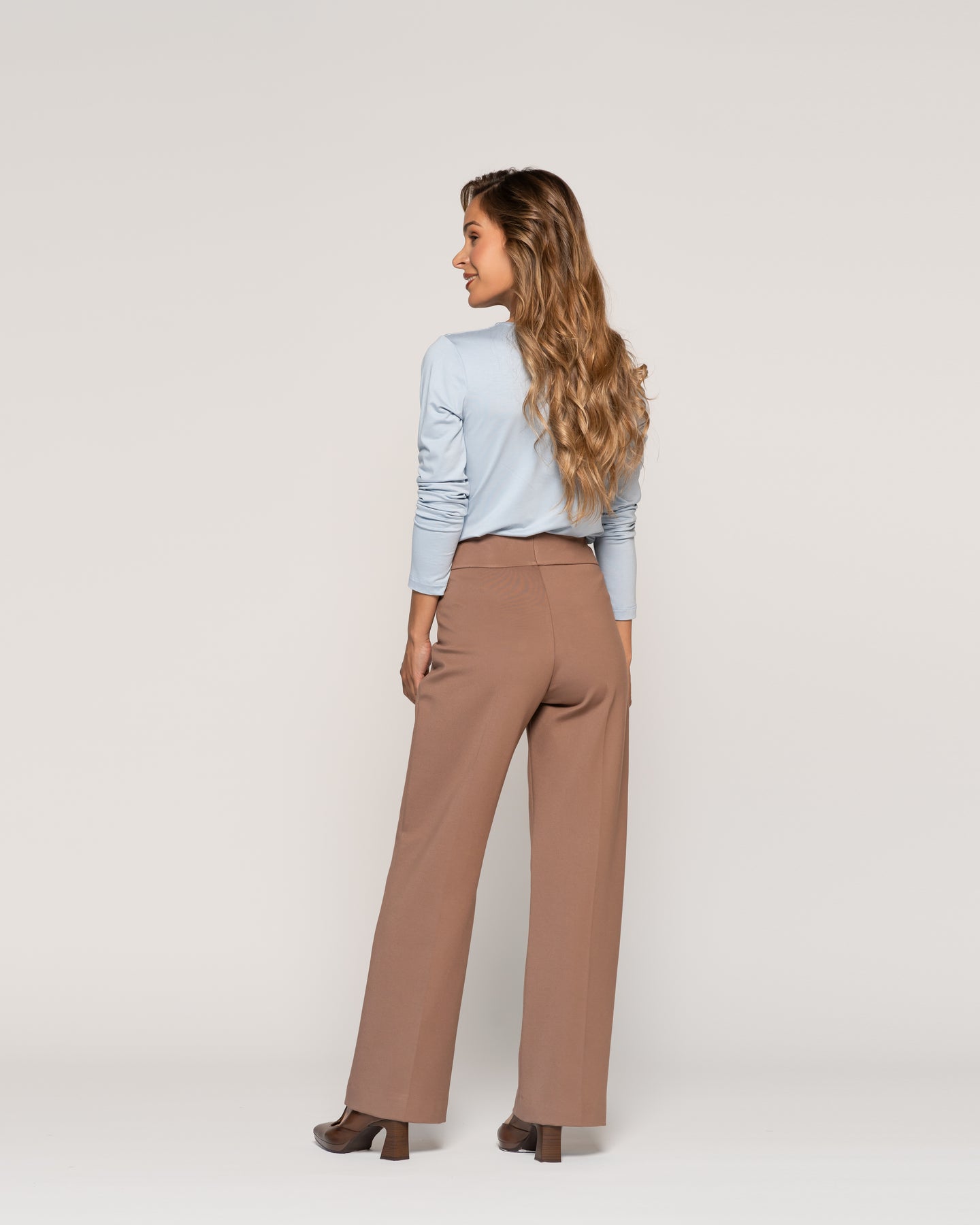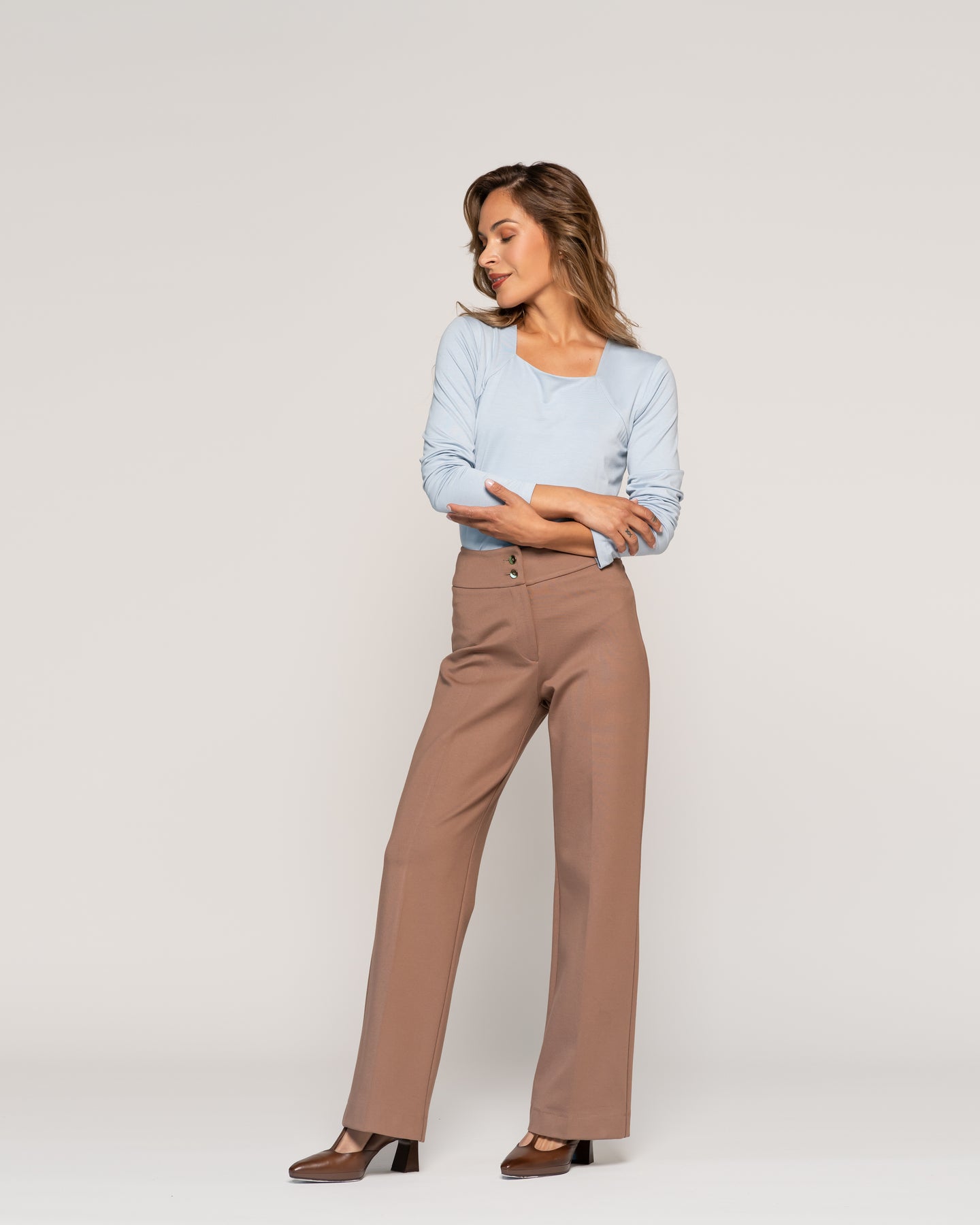 Polera en luminoso tono cielo que aporta pureza y sofisticación atemporal a la silueta. Su escote cuadrado suavemente estructurado enmarca el rostro con elegancia contemporánea, mientras las mangas largas de ajuste limpio acompañan el calce fluido y femenino. Una prenda esencial y versátil, ideal para composiciones refinadas y equilibradas de la colección CROMA Otoño Invierno 2026.