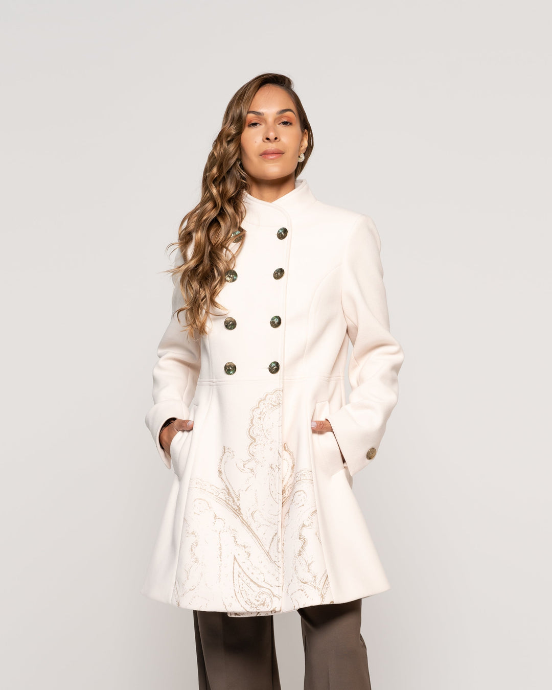 Abrigo Valentina Latte Mao Manga Larga Detalle Dorado Ludovica