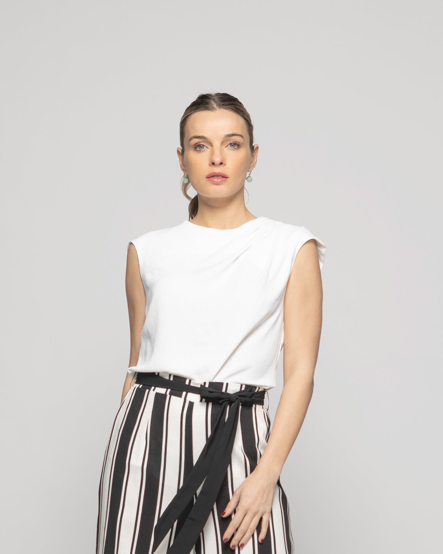 Blusa Mujer Bignonia Sin Mangas Cuello Drapeado Lisa Blanco Crudo Ludovica