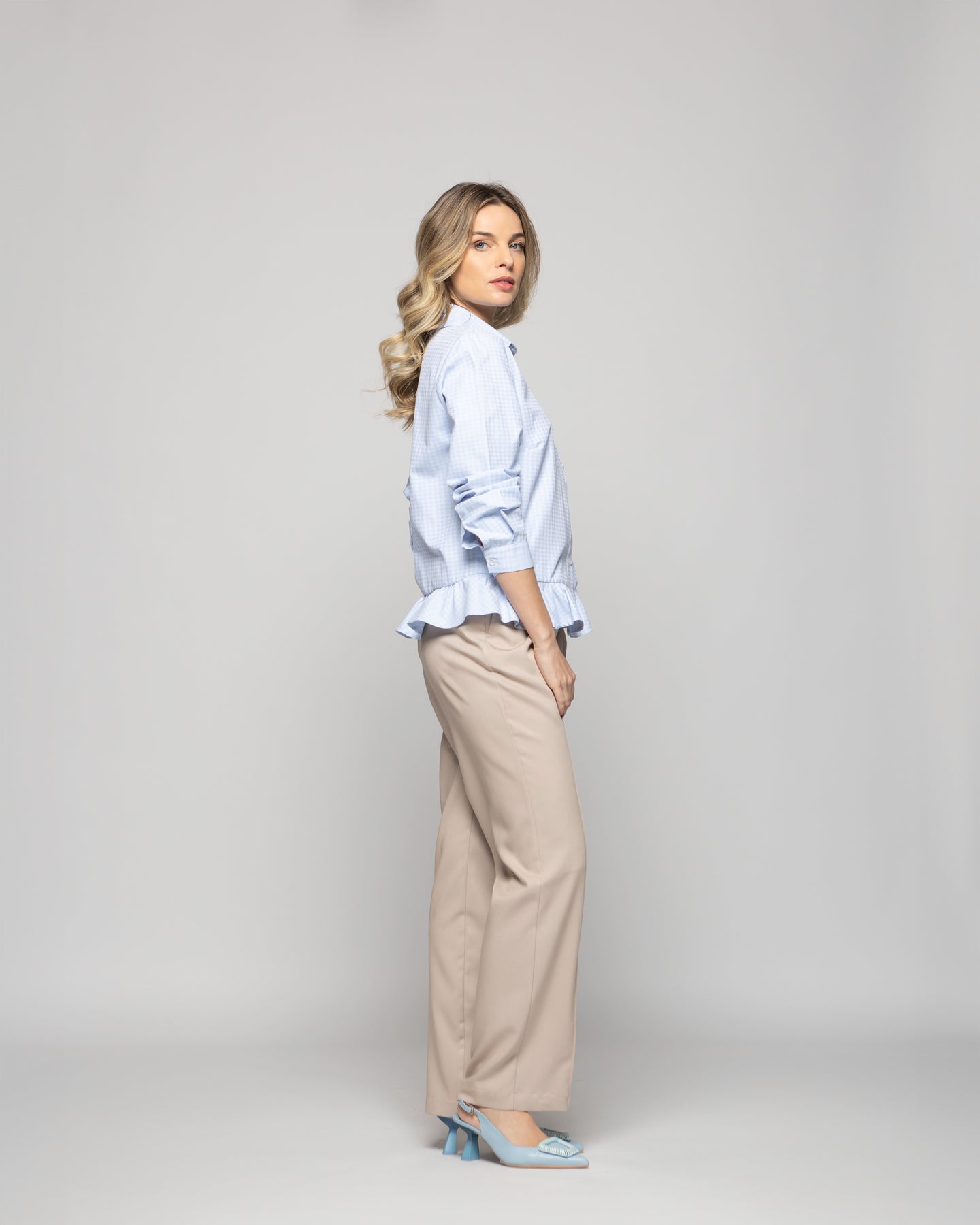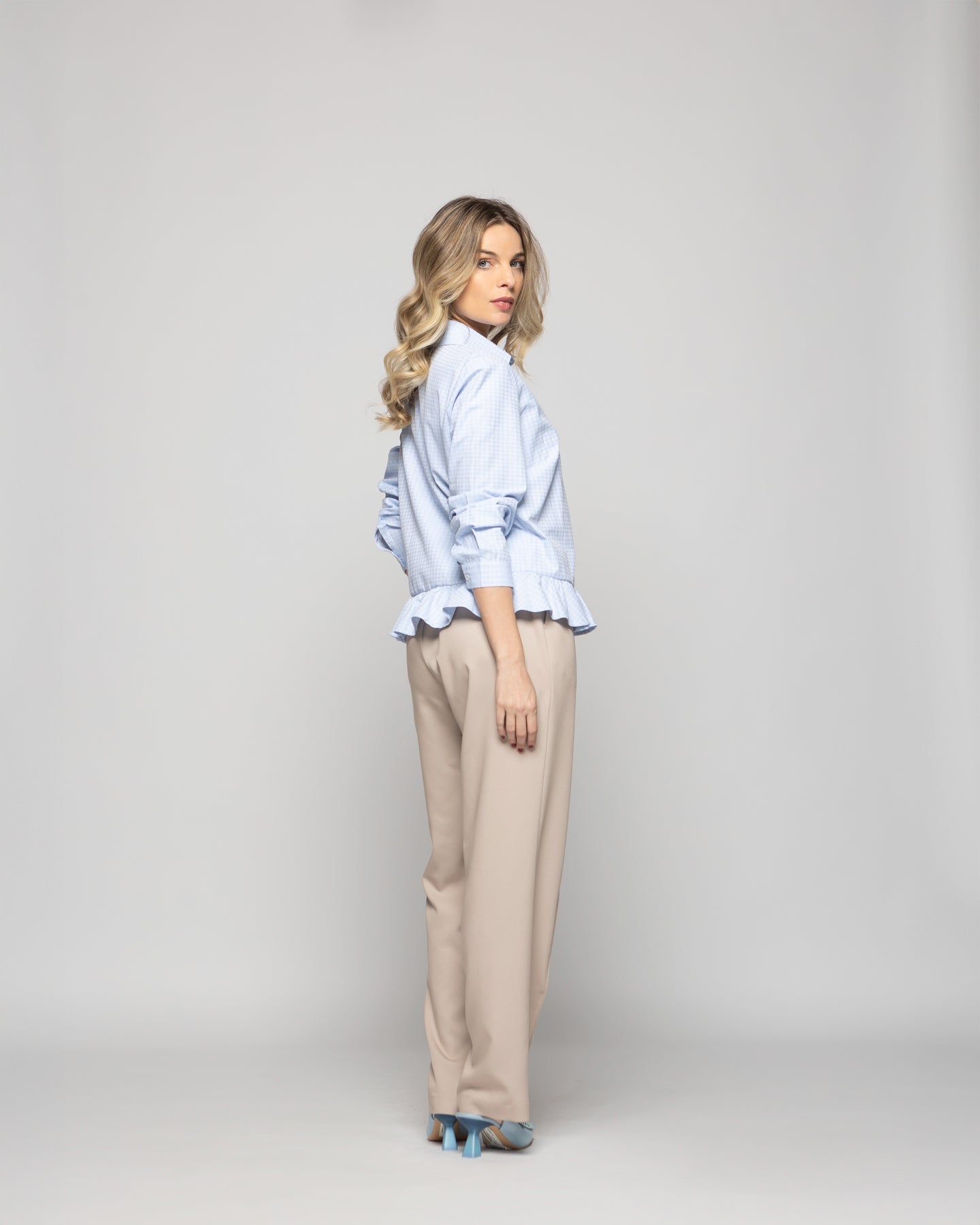 Blusa Mujer Cala Camisera Houndstooth Con Volante En Basta Celeste Ludovica
