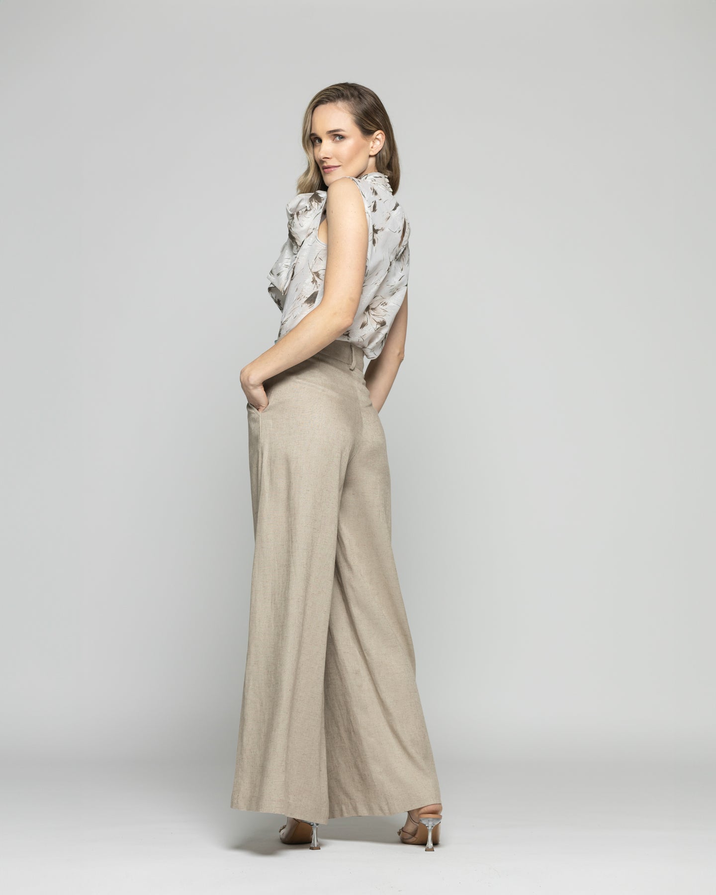 Blusa Mujer Gazania Sin Mangas Lazo Pañuelo Estampado Beige Ludovica