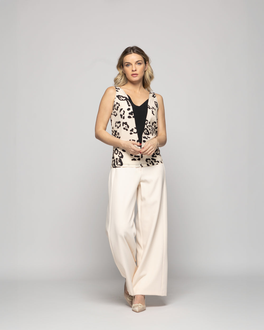 Blusa Mujer Begonia Sin Mangas Escote V Animal Print Ludovica