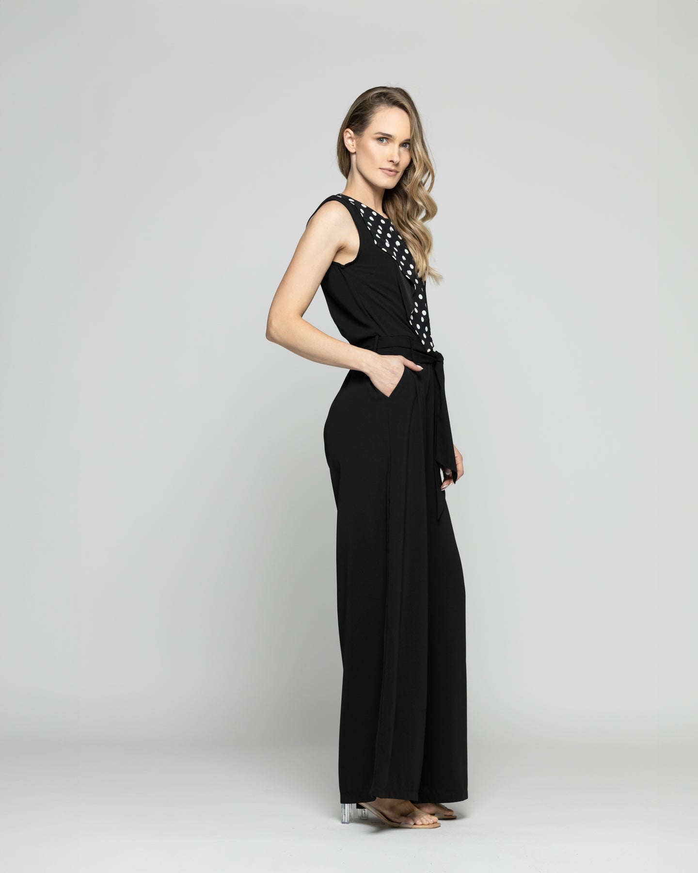Enterito Mujer Acanto Sin Mangas Volado Lunares Palazzo Negro Ludovica