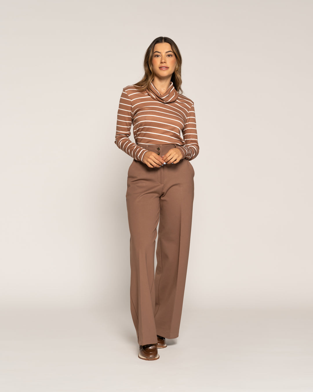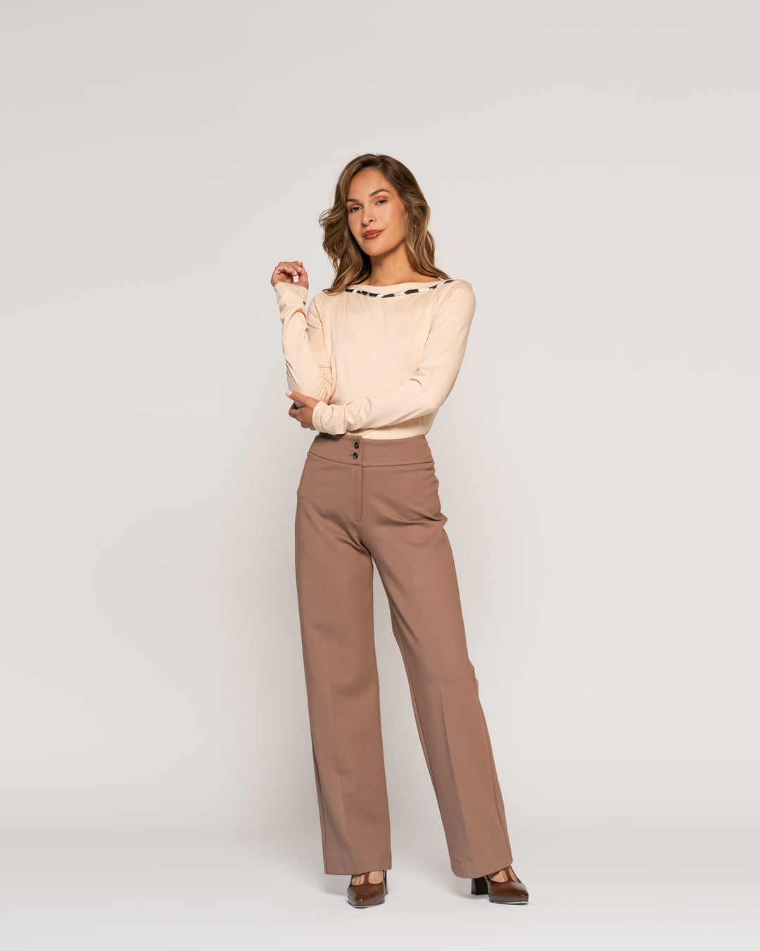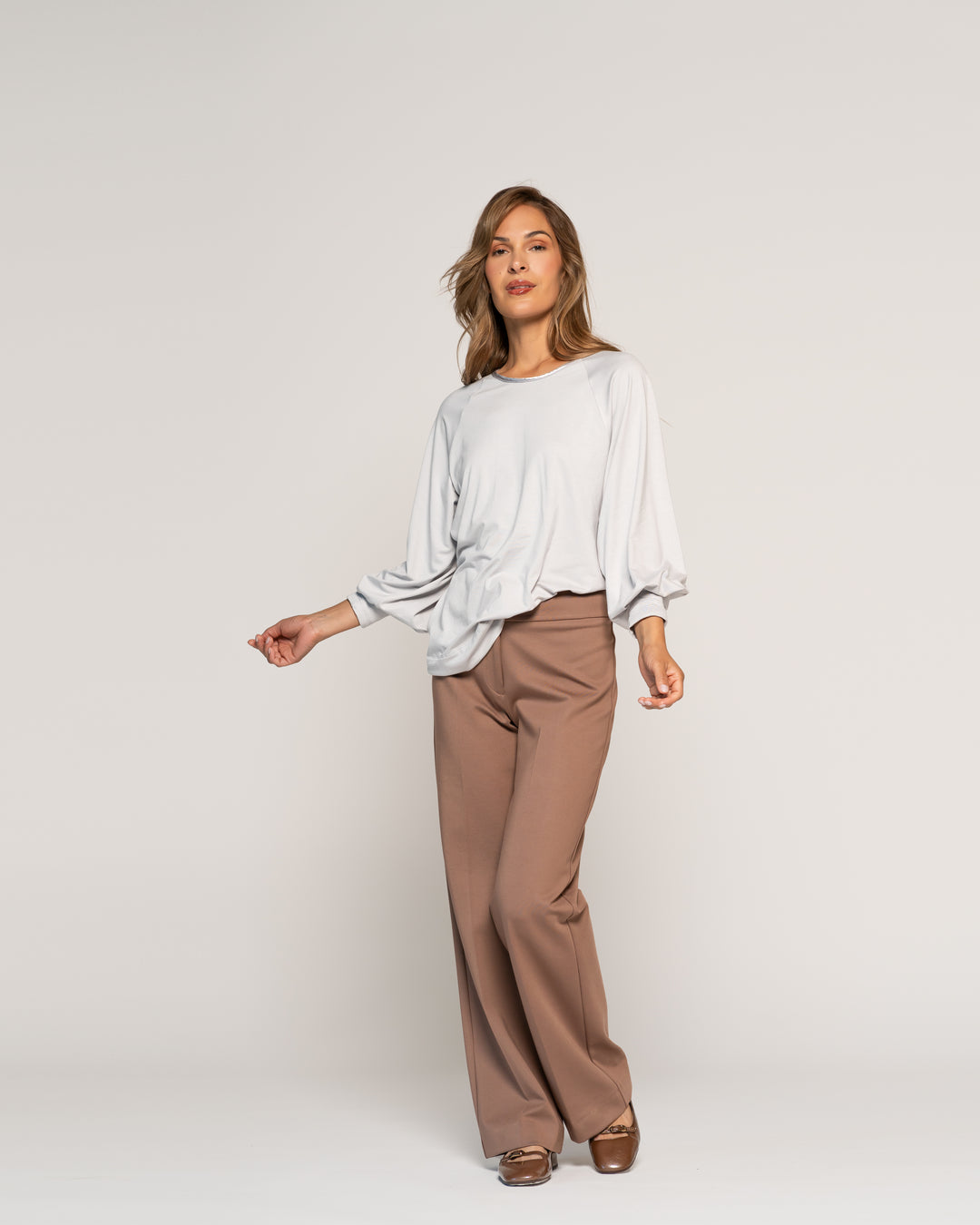 Polera Tomasa Moka Cuello suelto Manga larga Ajustada Puño ajustado Mujer