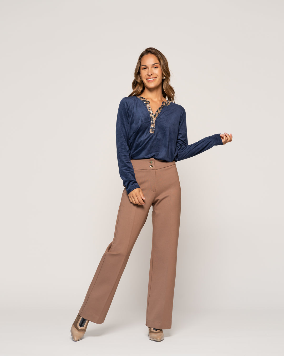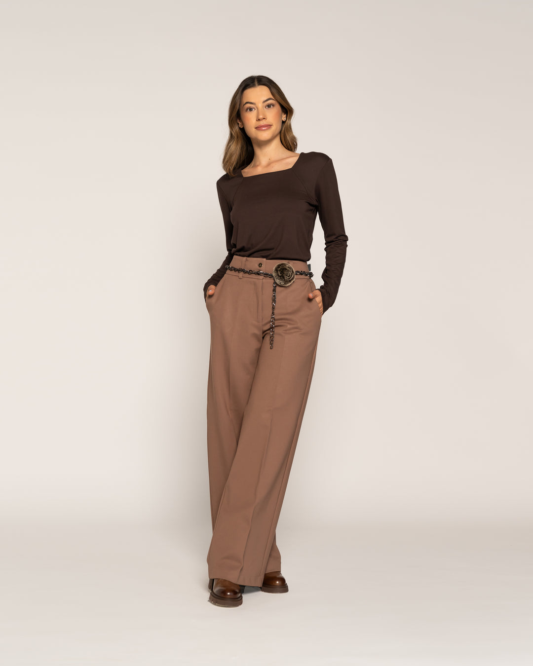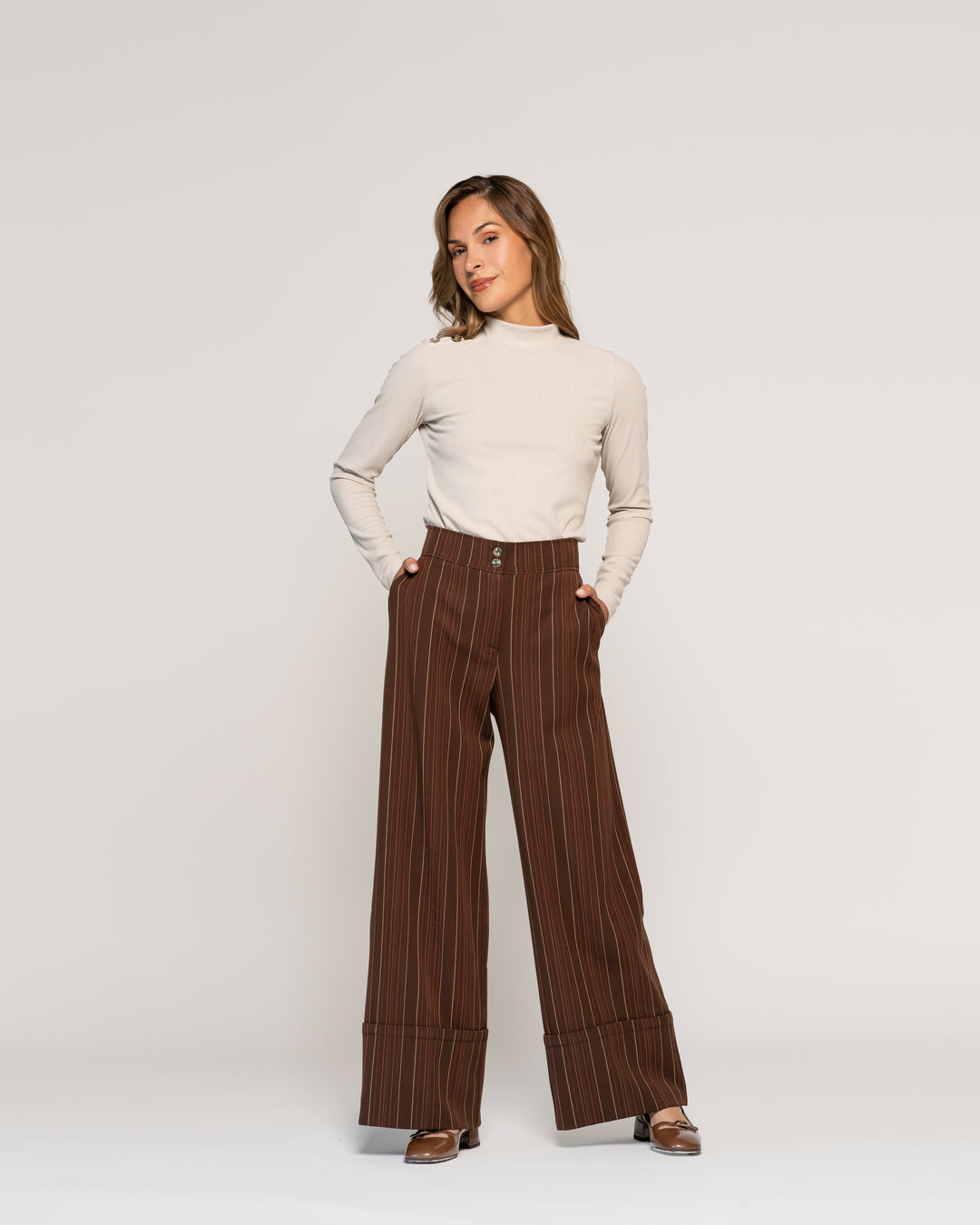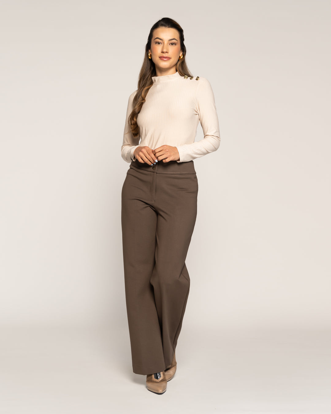 Polera Tomasa Moka Cuello suelto Manga larga Ajustada Puño ajustado Mujer