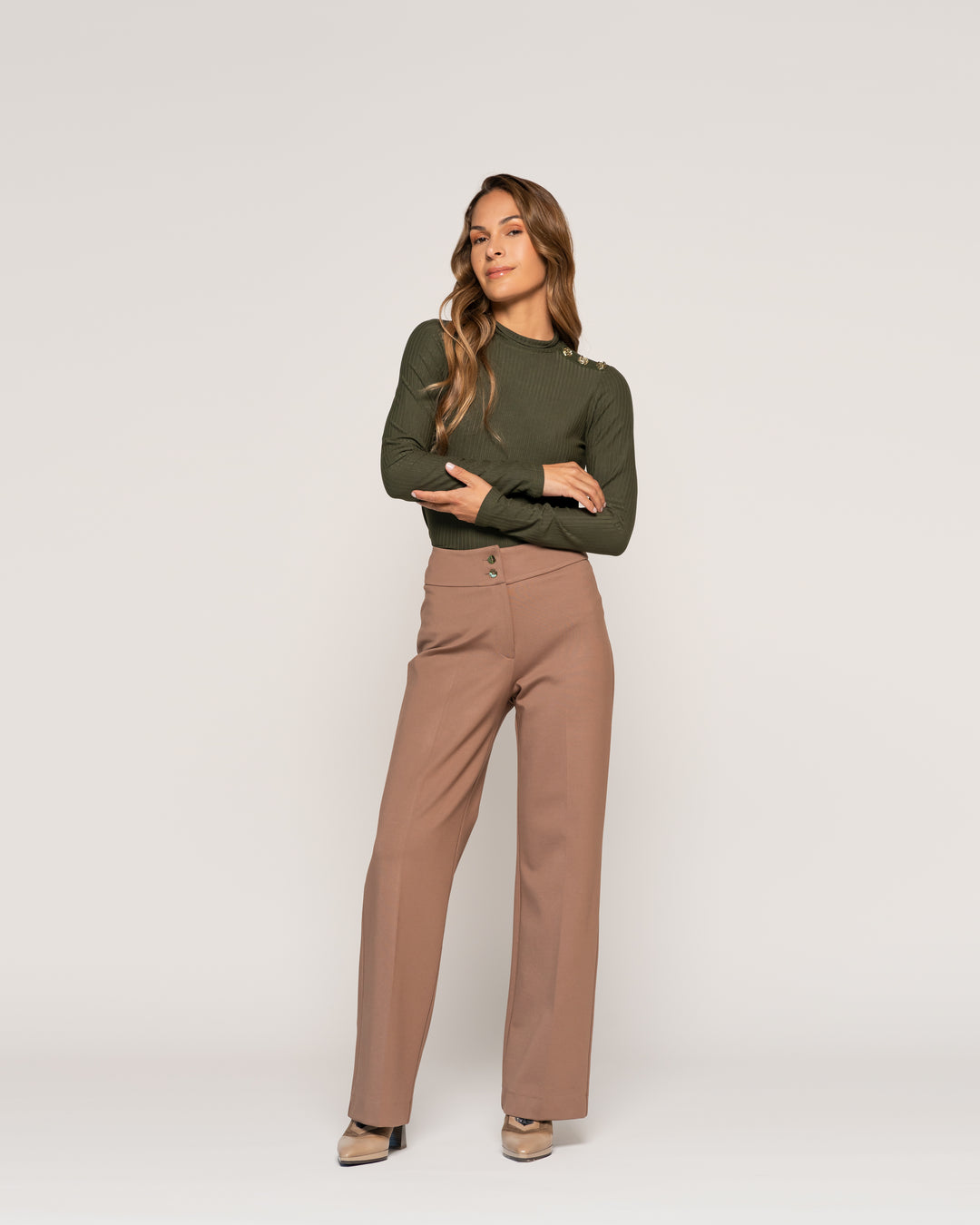 Polera Silvia Militar Cuello alto cerrado Manga larga Ajustada Puño ajustado Mujer