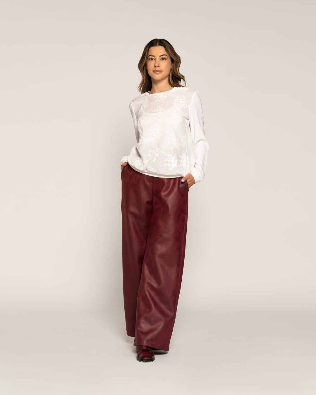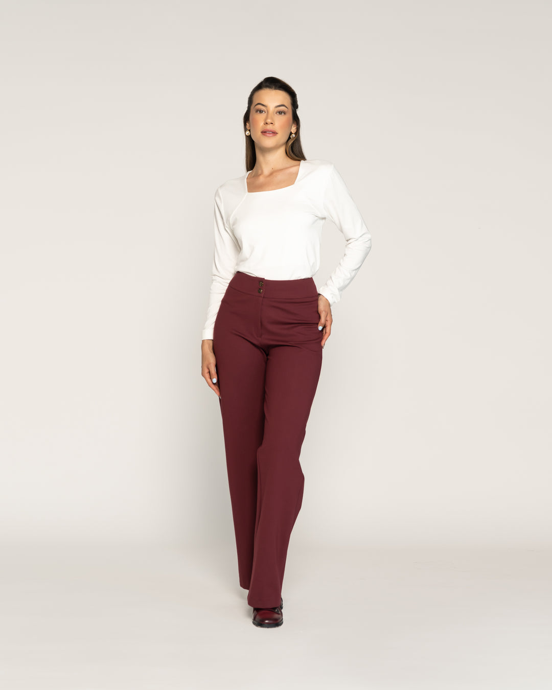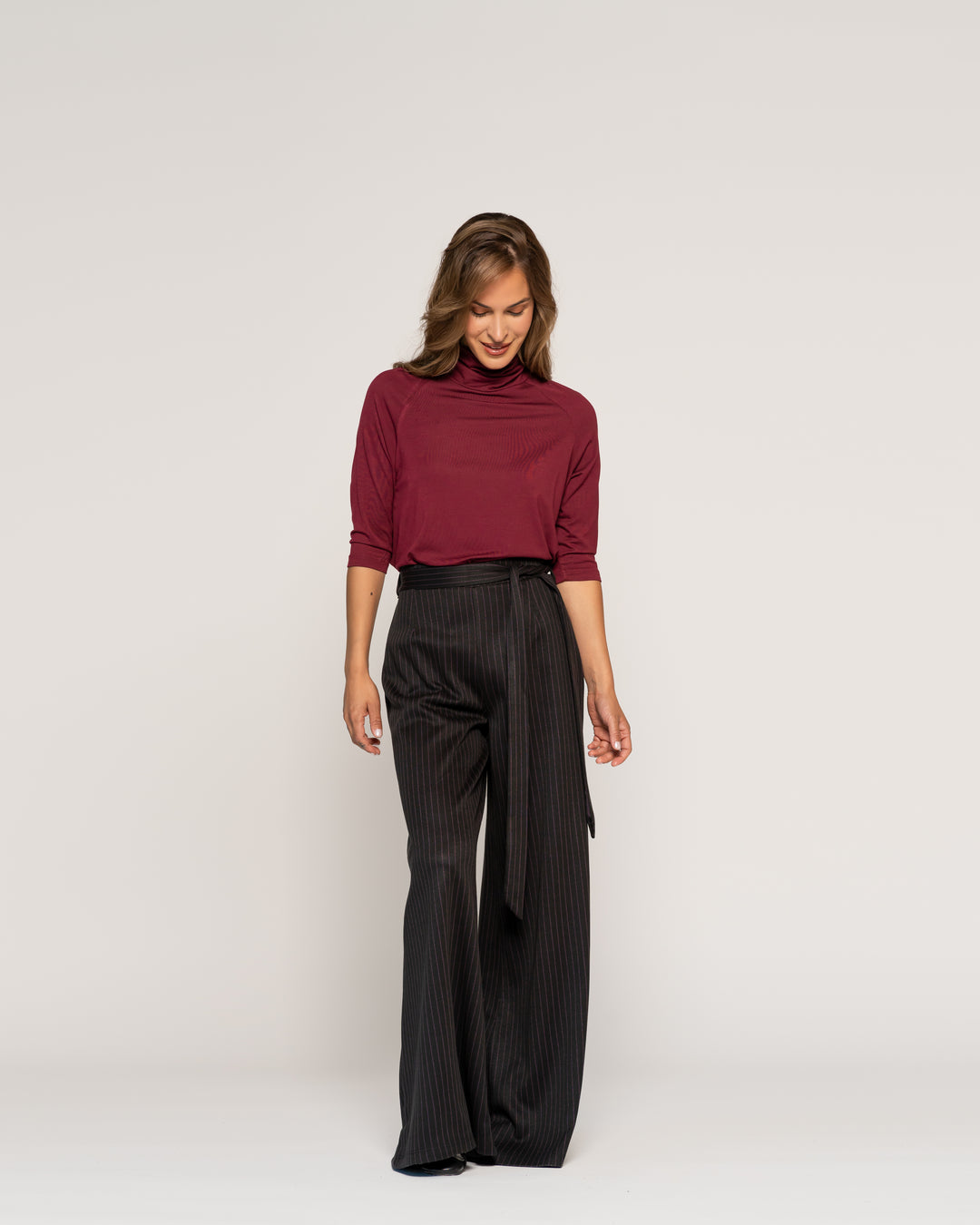 Polera Sophie Vino Cuello alto cerrado Manga 3/4 Ajustada Sin puño Mujer