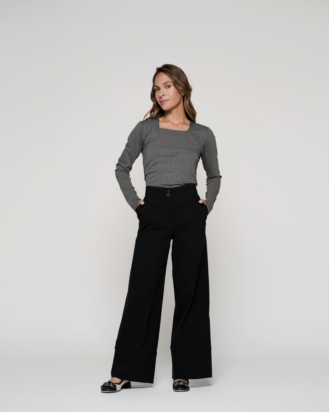 Polera Albaida Gris Cuello ovalado Manga larga Ajustada Puño ajustado Mujer