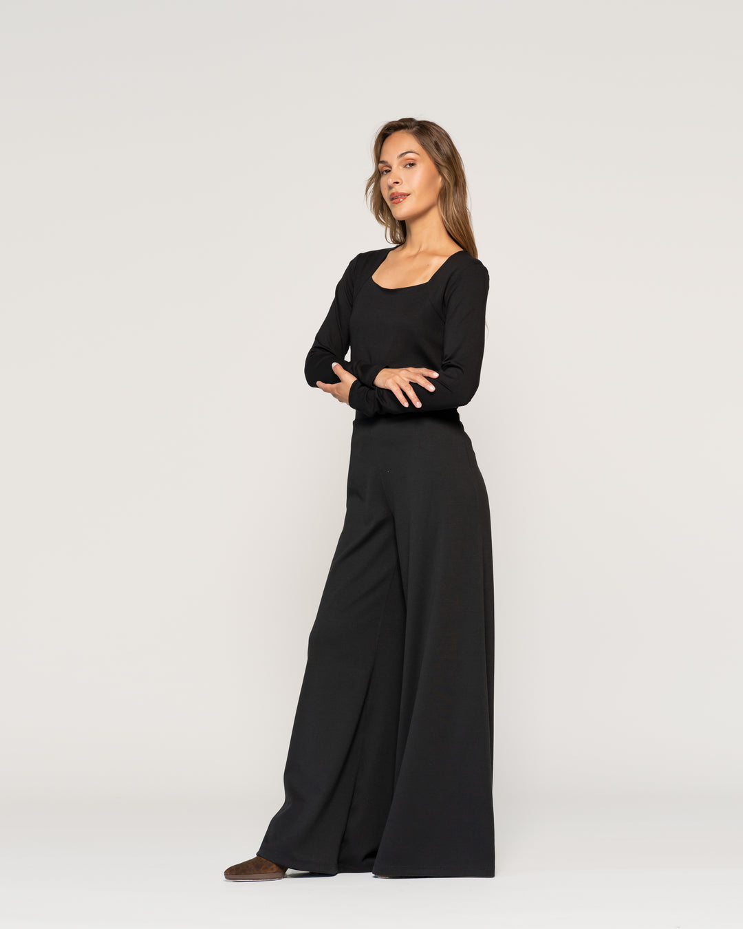 Polera Almudena Negro Cuello ovalado Manga larga Ajustada Puño ajustado Mujer