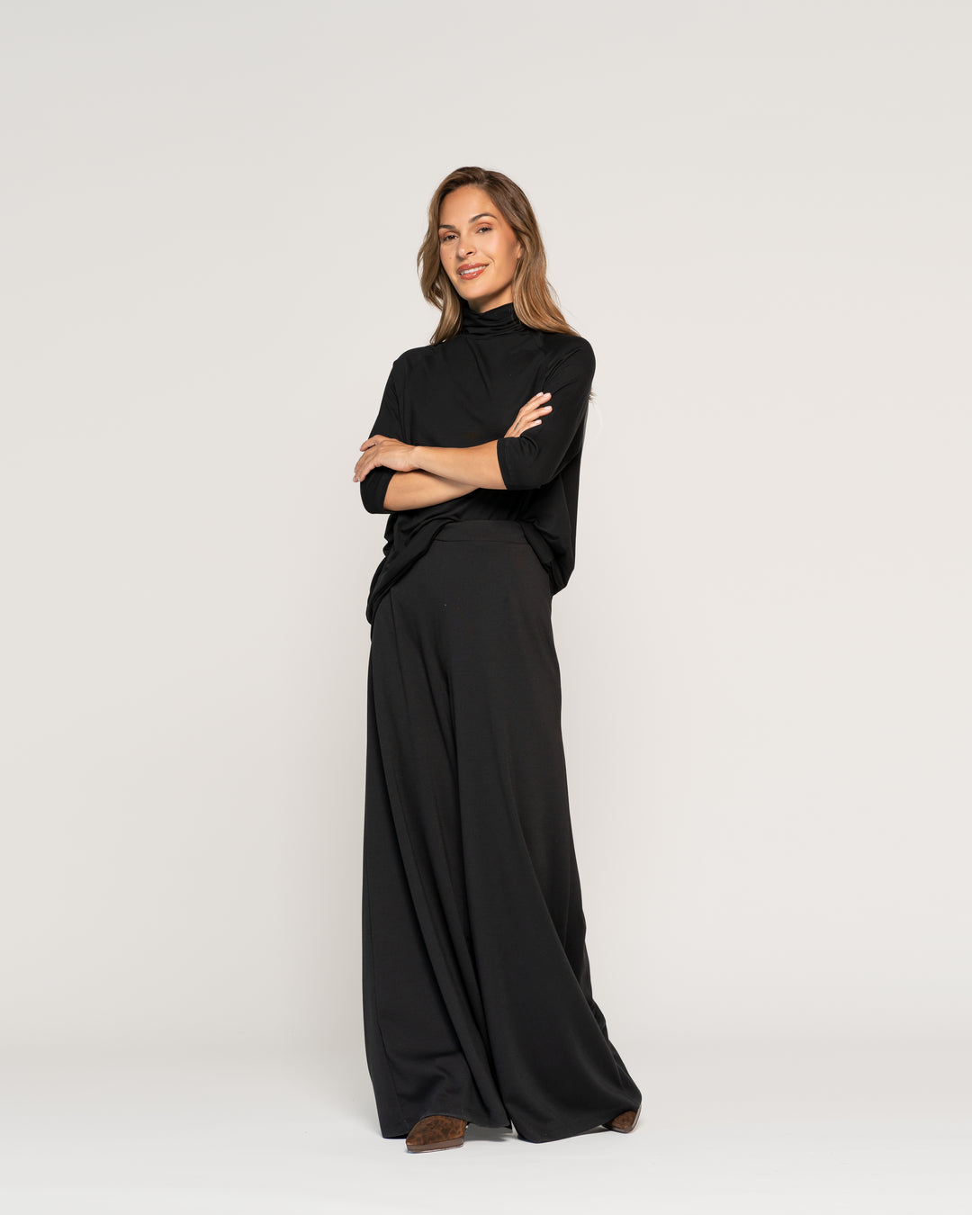 Polera Adela Negro Cuello alto cerrado Manga 3/4 Ajustada Sin puño Mujer