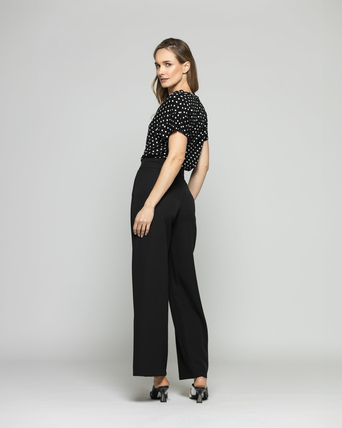 Polera Mujer Monarda Viscosa Manga Corta Lunares Blancos Negra Ludovica