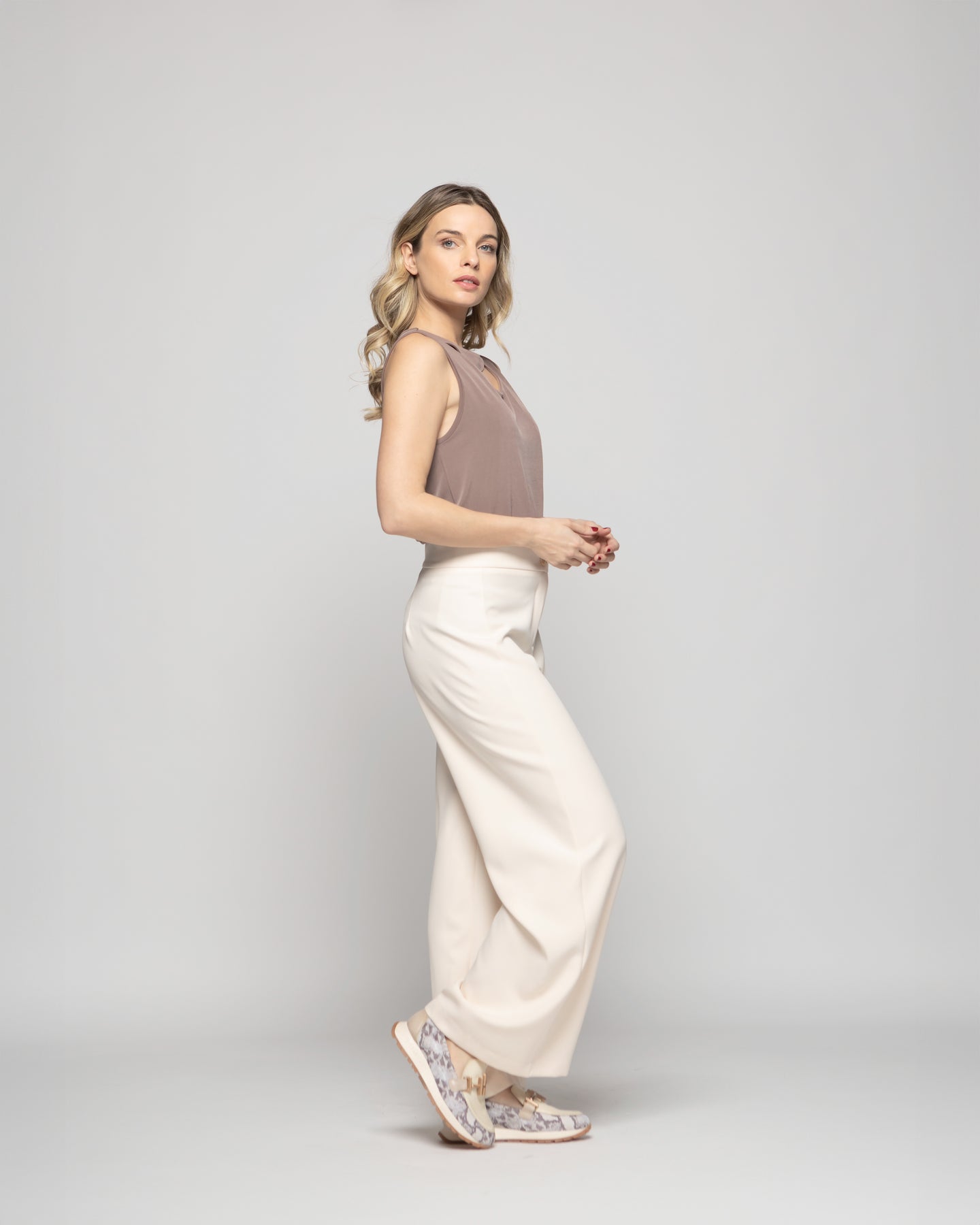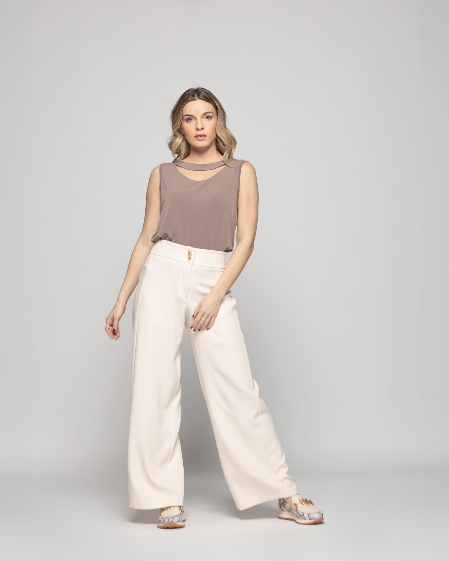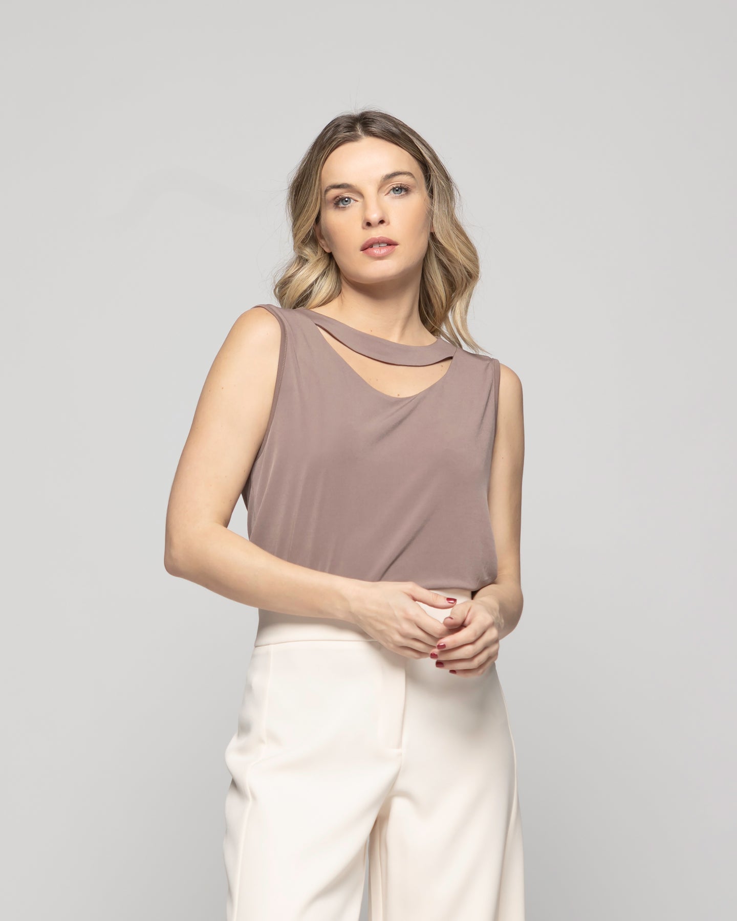 Polera Mujer Narciso Escote Medialuna Sin Mangas Café Taupe Ludovica