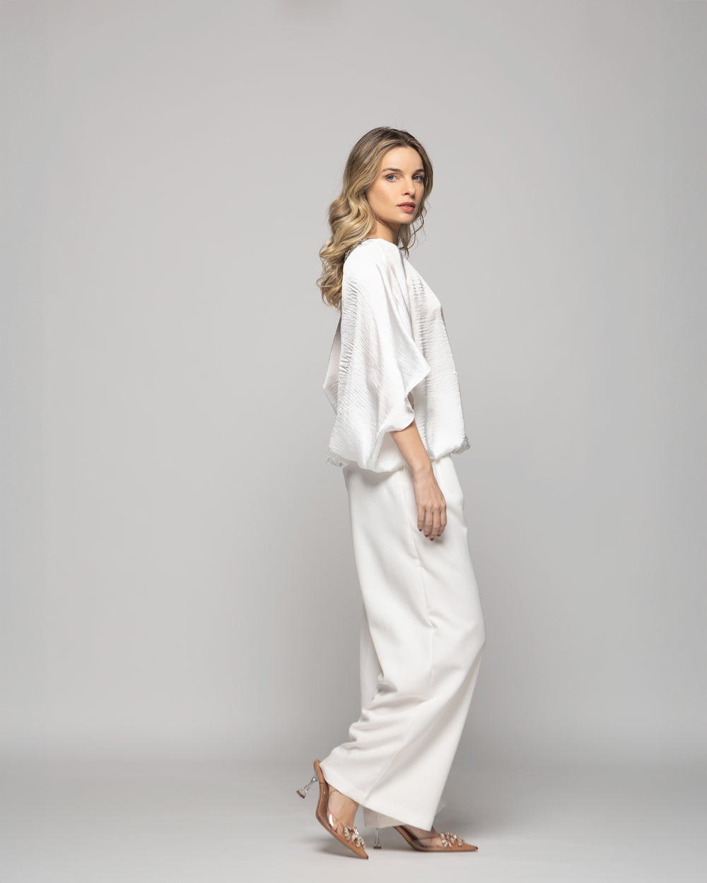 Blusa Mujer Girasol Satinada Detalle Lentejuelas Blanca Crudo Ludovica