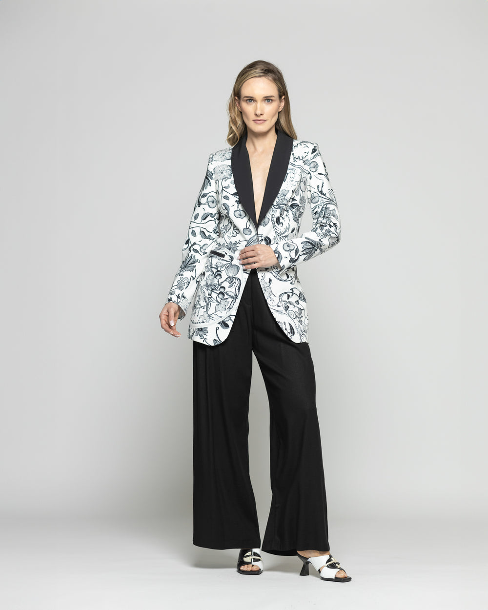 Blazer Mujer Lirio Clásico Estampado Botánico Negro Ludovica