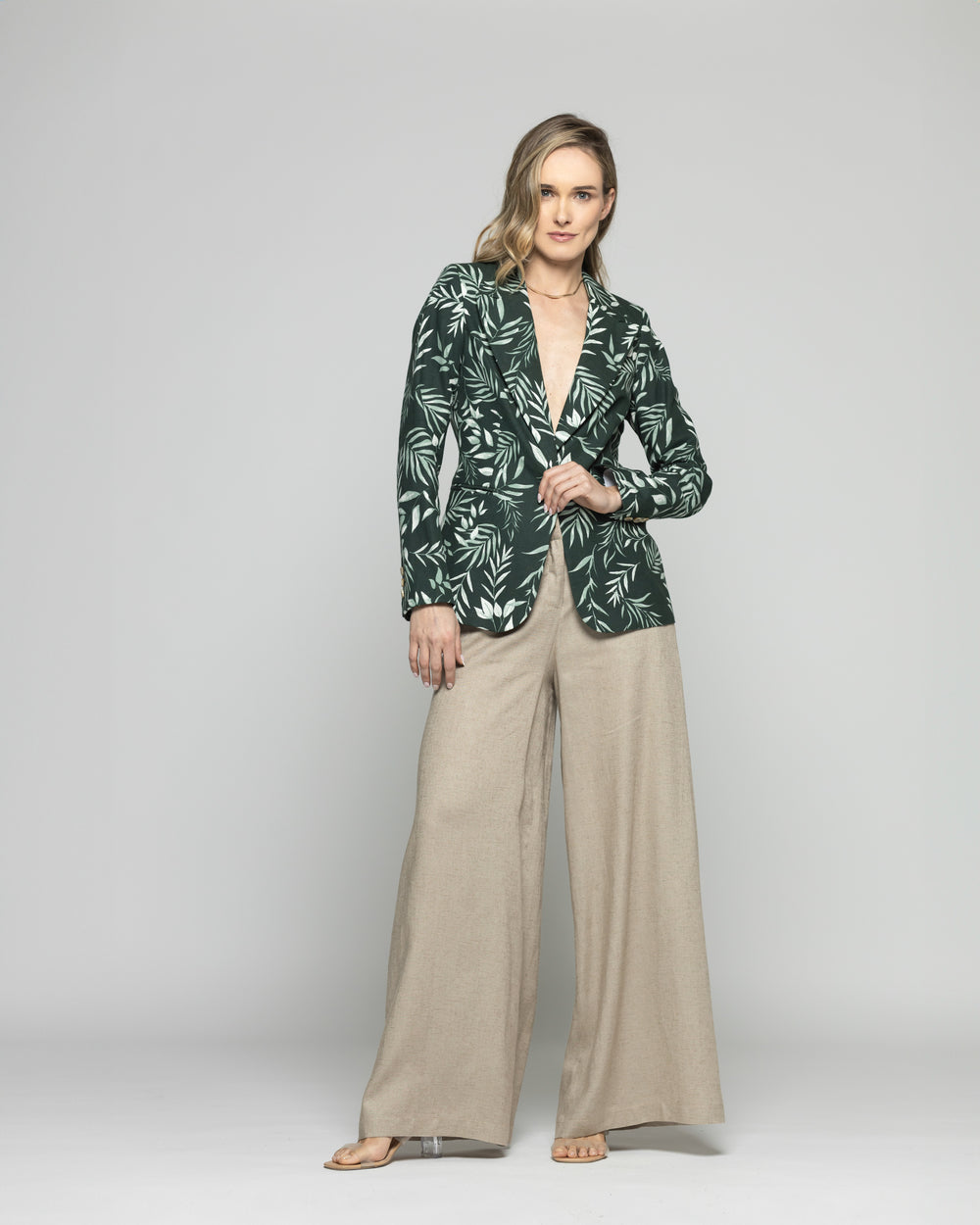 Blazer Mujer Magnolia Clásico Estampado Hojas Verde Ludovica