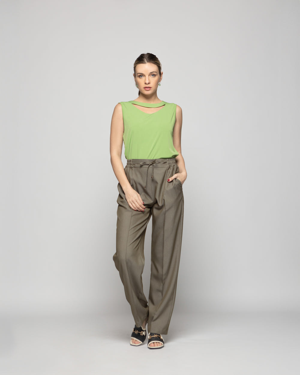 Polera Mujer Narciso Escote Medialuna Sin Mangas Verde Pistacho Ludovica