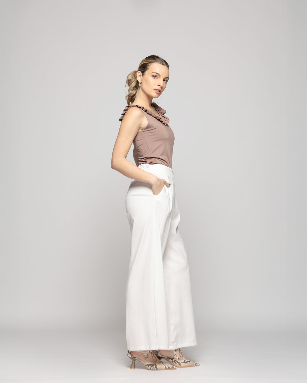 Pantalón Mujer Fresia Viscosa Lino Palazzo Beige Ludovica