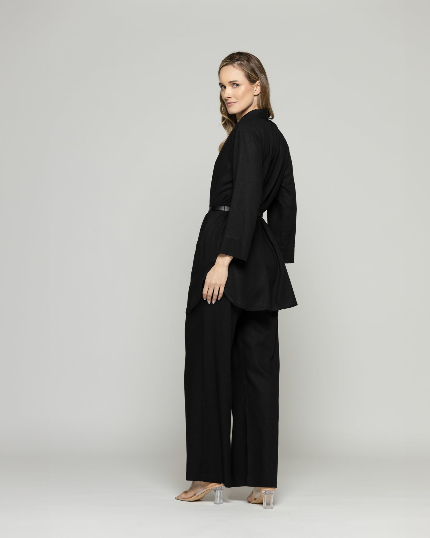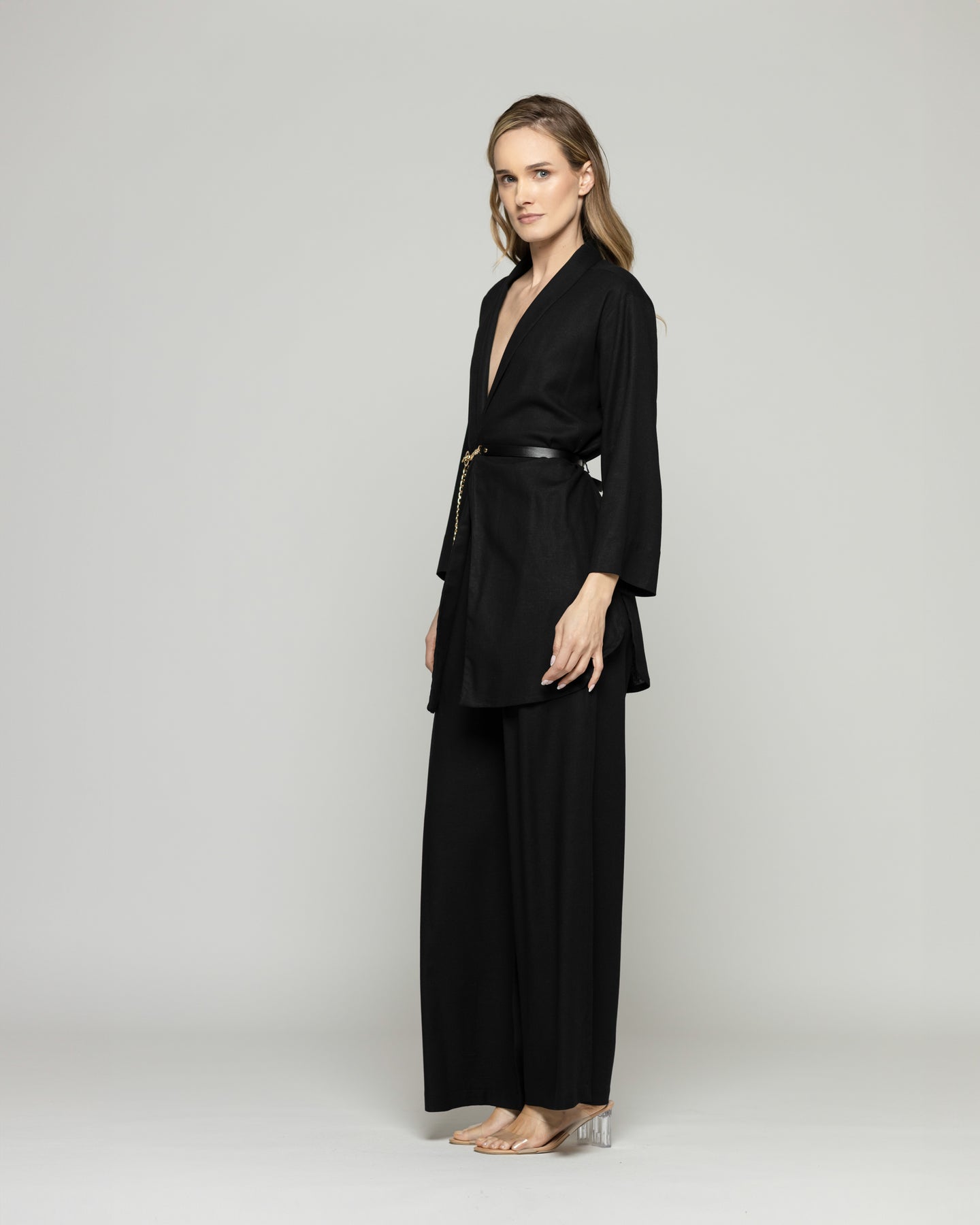 Esta túnica o blusón tipo kimono redefine la elegancia relajada con un diseño minimalista y versátil. Su confección de viscosa y lino la hacen una prenda liviana y de caída fluida lo convierte en una prenda ideal para el cambio de temporada primavera verano mientras que el cinturón de cadena dorada marca la silueta y añade un contraste moderno. Perfecto para elevar un look monocromático o complementar un conjunto sofisticado sin esfuerzo. Una prenda atemporal que combina comodidad, estilo y estructura.