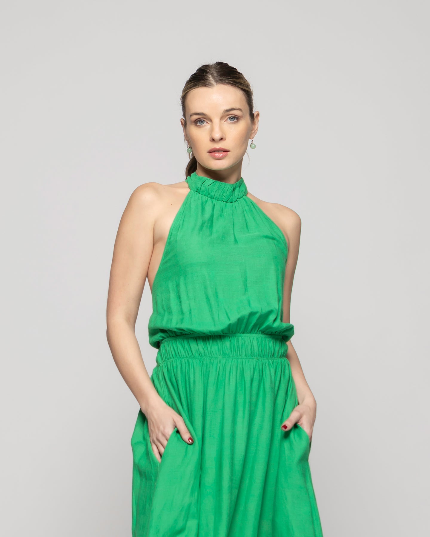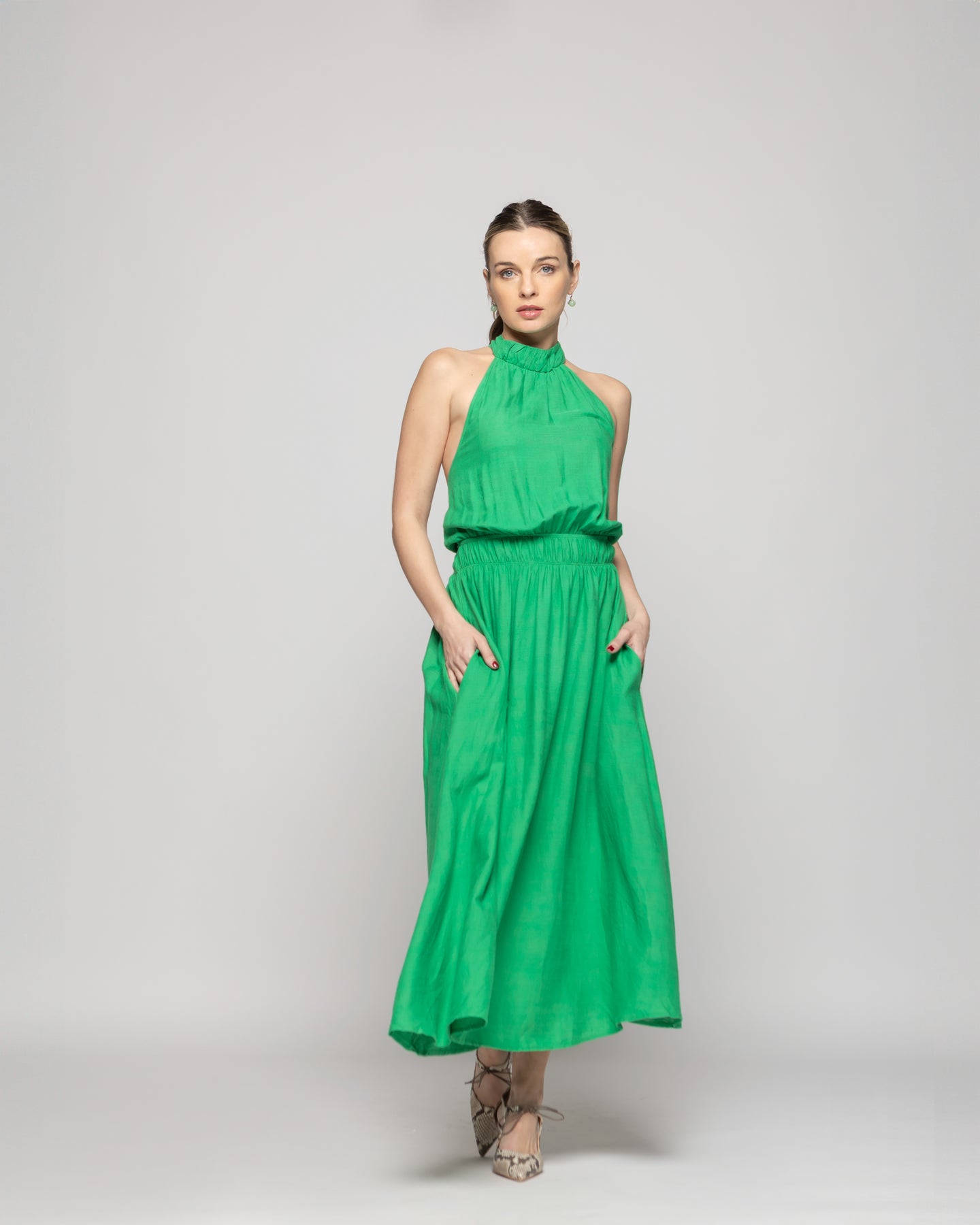 Vestido Mujer Gerbera Largo Escote Halter Cintura Ajustada Verde Ludovica
