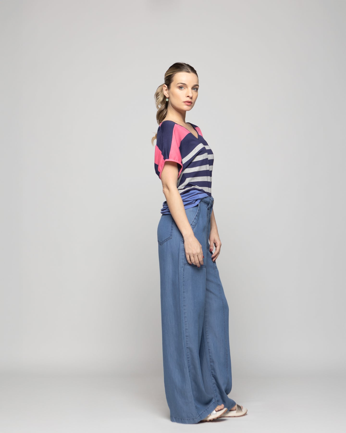 Polera Mujer Nemesia Escote V Manga Corta Rayas Multicolor Ludovica